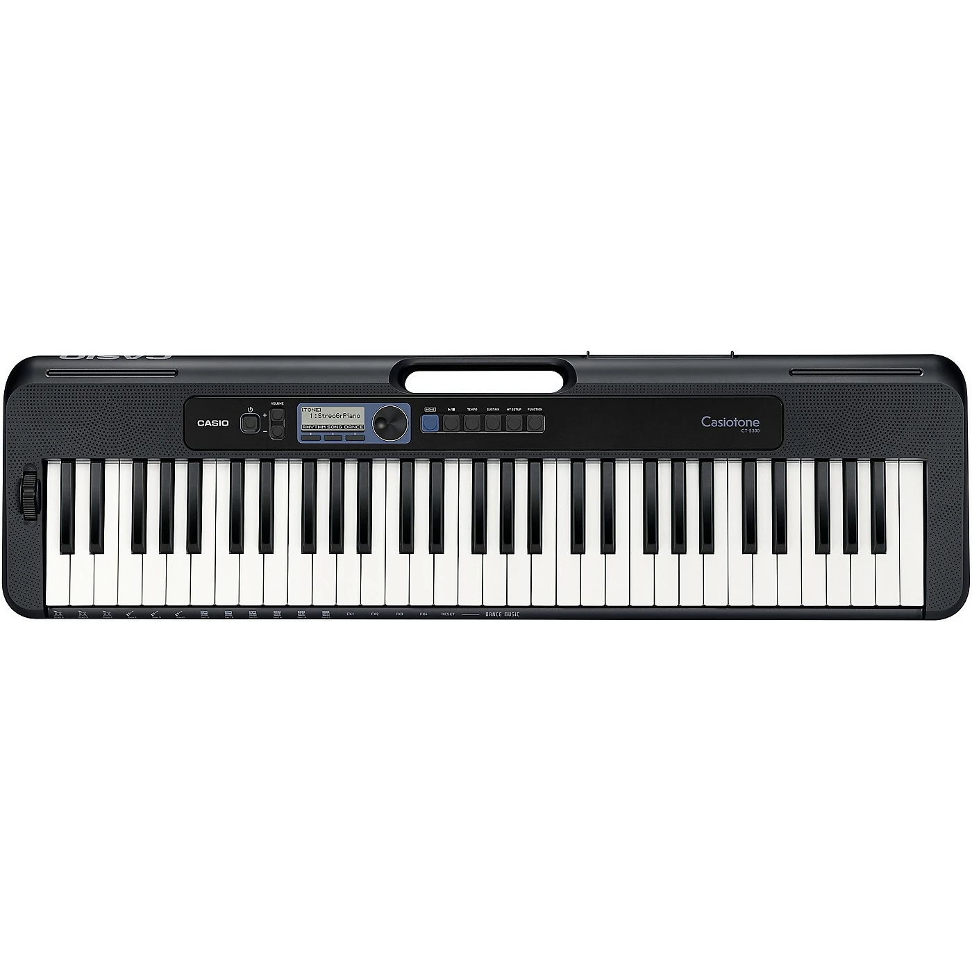In 1980, Casio made music creation available to everyone, everywhere with the very first Casiotone portable keyboard. The CT-201 was the first electronic keyboard with full-size keys that anyone could afford. It launched a legacy of giving musicians of any age, budget, or skill level the innovations that help them sound their best. Now, nearly 40 years later, Casio proudly presents the next generation of Casiotone keyboards. Featuring 400 tones and 75 rhythms, the Casiotone CT-S300 is the perfect first step, the perfect gift, and the perfect way to have fun making music. The CT-S300 also features touch response keys and a pitch bend wheel. The ultra-compact CT-S300 lets you make music wherever and whenever you want. Just pop in six AA batteries, grab the built-in carrying handle and take your inspiration to go.Compact and portableThe ultra-compact CT-S300 lets you make music wherever and whenever you want. Just pop in six AA batteries, grab the built-in carrying handle and take your inspiration to go.Tones and rhythmsExplore a variety of great sounding Tones and accompaniment Rhythms with an easy-to-read LCD display and simple controls. Press the “My Setup” button to quickly get to your favorite Tone and Rhythm.Dance Music ModeDance Music Mode lets you easily create and remix EDM tracks. Select a style, and use the keys to trigger drum loops, basslines, synth parts, effects, transitions and more.Built-in speakersUse the built-in speakers to share with friends, or plug in headphones for quiet play at any time. The 1/8” audio input lets you play along with music from your favorite device.Chordana Play appConnect to the free Chordana Play iOS/Android app and take your music further, learning how to play your favorite songs from downloaded MIDI files. The class-compliant USB port connects to any Mac/PC/Android device with no drivers needed.