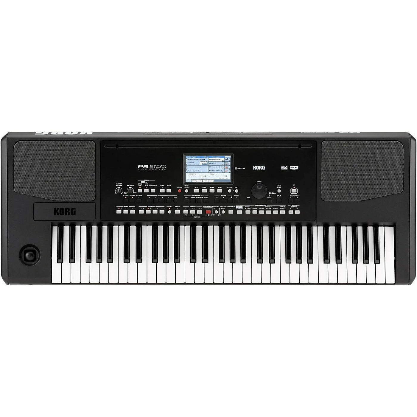 KORG has long been at the forefront of realtime arranger technologies. The state of auto-accompaniment has come a long way in recent years to a point where the preset arrangements that the best of the new machines generate are often superior to anything the user would be inclined to put together given the amount of time required. As a result, keyboards like the KORG Pa300 are viable not only for live entertaining, but for professional songwriter demos as well.The Pa300 is the latest keyboard in the KORG Pa Series of internationally acclaimed and bestselling musical arrangers. It’s compact, inexpensive and powerful, with the most up-to-date collection of quality sounds and Styles. Using the built in Styles, you can quickly and easily play along with a backing band or even create your own music. The Pa300 is not only fun to play any time you like, but it’s the ideal way for people of all ages to write and perform music.Sound qualityIt all begins with the sound. KORG sound quality is universally recognized as superior, and relied on by musicians around the world. First in its class, the Pa300 delivers an even richer, more detailed, sophisticated natural sound than ever before, with musical instruments from almost every genre brimming with depth, nuance, subtlety, accuracy and richness. Over 950 sounds are preloaded, including a renewed GM soundset, and 64 drum kits. There is also an amazing multilayer stereo acoustic piano, accurately sampled from a Concert Grand, which includes string and damper pedal resonance. Sounds are fully editable and changes can be saved in the User area.A full complement of EffectsOf course great sound is about more than the instruments. For many years, KORG has produced outstanding studio quality effects that are simply breathtaking. The Pa300 has four Stereo Master Effects processors, with 125 of these effects including standards such as Reverb, Delay and Chorus and some of the universally acclaimed REMS guitar based effects for authentic guitar tones. Each Track features an EQ with Low, Mid and High controls. A custom track EQ can be memorized in the general preferences for the Song Play mode. This will help adapting the sound to personal taste for any MIDI file you play. Need a lighter bass track? Save the right equalization, and the bass will stay light with all the subsequent Songs.Styles are professional qualityMatching this high sound quality, the Pa300 delivers a new set of deluxe Styles, programmed by some of the leading arrangers in the world; each one bringing unique musical strengths. The result is hundreds of preloaded Styles that provide unparalleled realism and detail. Covering an expanded range of musical genres, the Pa300 gives you Styles for almost every important occasion.Easy to useWith all the technological power packed inside, it was vital that we also made the Pa300 easy to understand and easy to use. But even more, we wanted the entire user experience with the Pa300 to be an intuitive, musical, fast, fool proof process. The panel layout has been revised and our graphical user interface uses an amazing Graphical Color Touch Screen so you simply think, point and click for easy and intuitive use.There are two interface modes so that a musician of any level can start making great music quickly: Easy and Expert. The Easy mode shows only the most important controls, while keeping a clean and straightforward interface, useful for beginners or playing live. Nothing stands between you and your professional performance. Of course, in Expert mode you have full editing control.Your live performances will work the way you want, and when you do not remember where a file, a Song or a Style was saved, just use the Search function to let Pa300 find it for you.A final 4-band parametric EQ is added to the sound output of the Pa300. Everything can be processed by this powerful and musically refined EQ, easily adapting the sound to your musical taste or correcting a problematic live context.